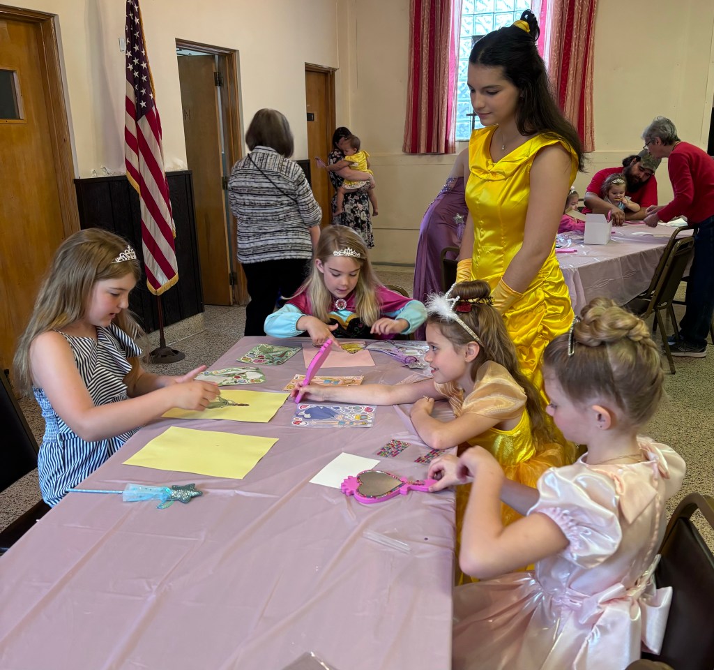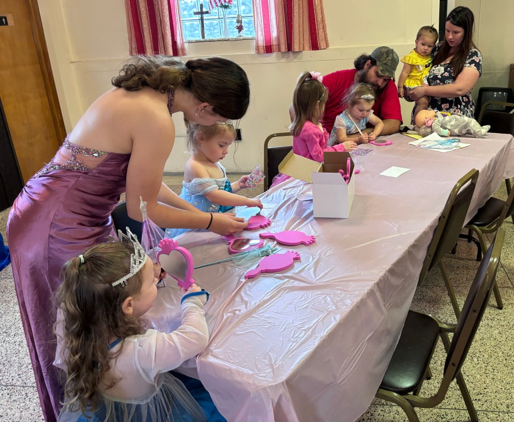 May 18, 2024, the Frazier Community Library hosted “The Princess Tea”. This is an annual event and “Princesses” from age 3-10 attended…..dressed as their favorite Disney princess! Upon arriving they received a sparkling tiara and magic wand! They were joined by four Princesses from the Frazier High School Drama Club . These young ladies thrilled and enchanted the young princesses as they assisted with “Pin the Crown on the Princess”, face painting, and creating a personal magic mirror. Princess stories were read and the little princesses enjoyed having refreshments with the grown-up princesses. One of girls from the drama club remembered attending a Princess Tea when she was a “little princess”………it was so rewarding to see her grown up and bringing the same joy to the little ones!