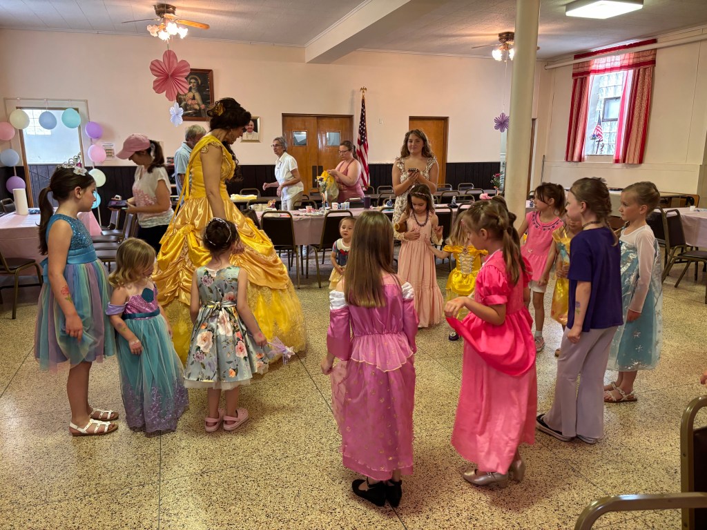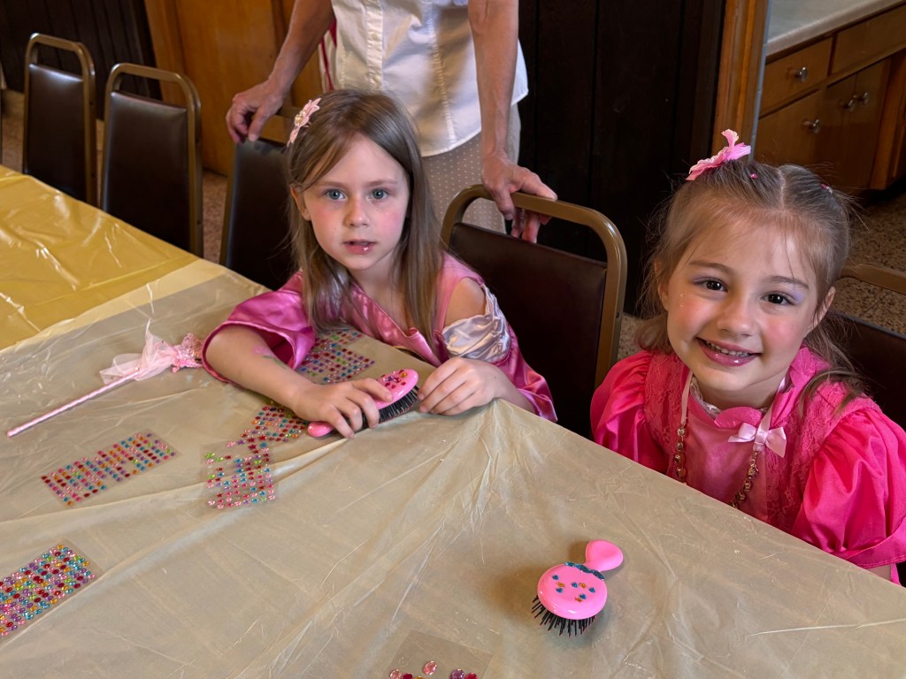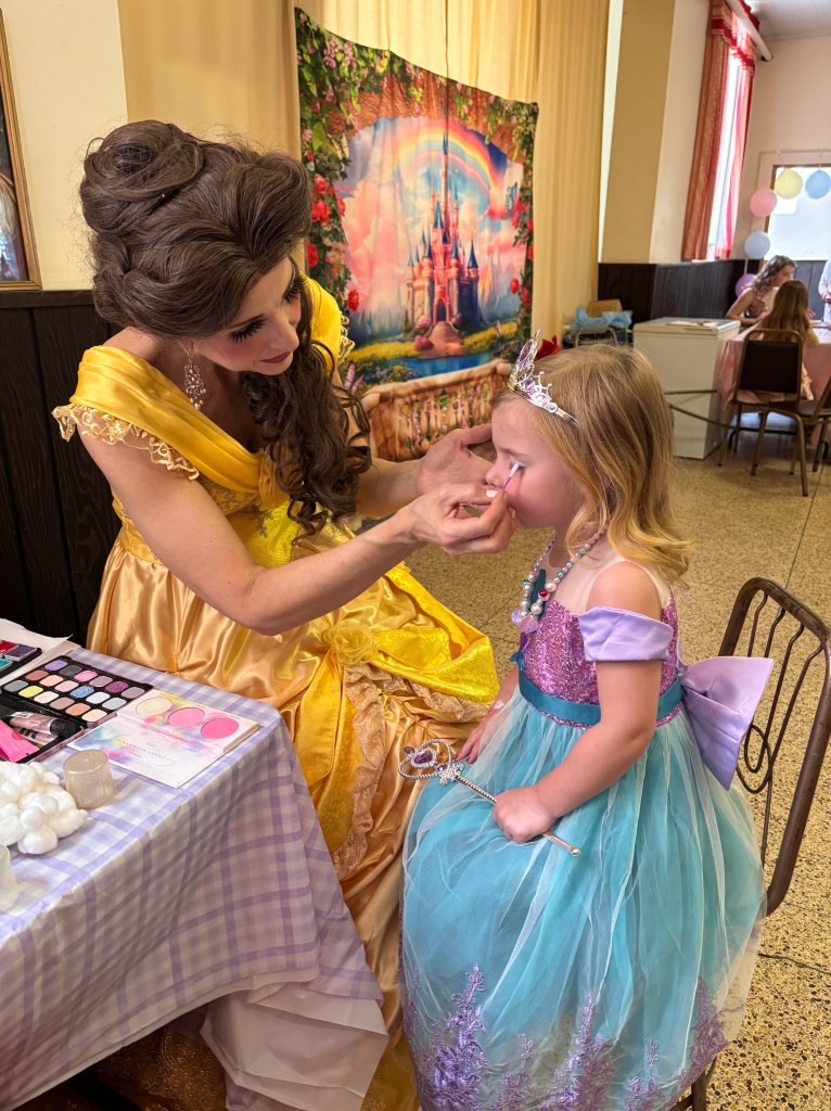 Twenty little Princesses enjoyed a “royal gala” on Saturday afternoon at the annual Frazier Community Library Princess Tea. Disney’s Princess Belle was the guest of honor at this year’s tea. The little royals enjoyed a brunch, having their make-up done, a craft and dancing with Belle! Of course, everyone got pictures with Princess Belle! A fun and enchanting time was had by all! The Community Library would like to thank Princess Belle (The Crystal Queen) for making the event special for all the little Princesses in attendance. (Find her on Facebook as “Crystal Queen”)