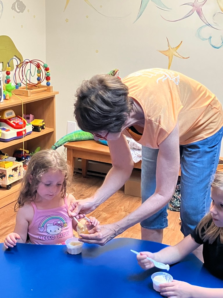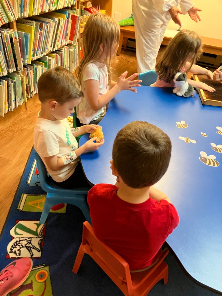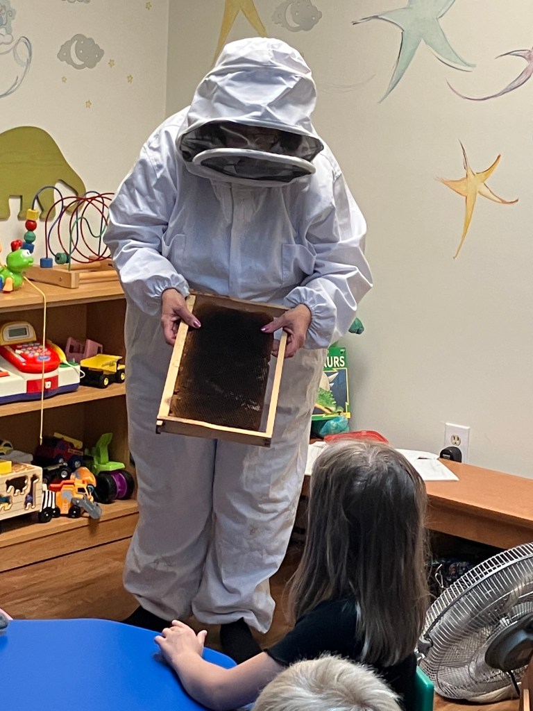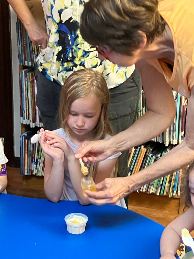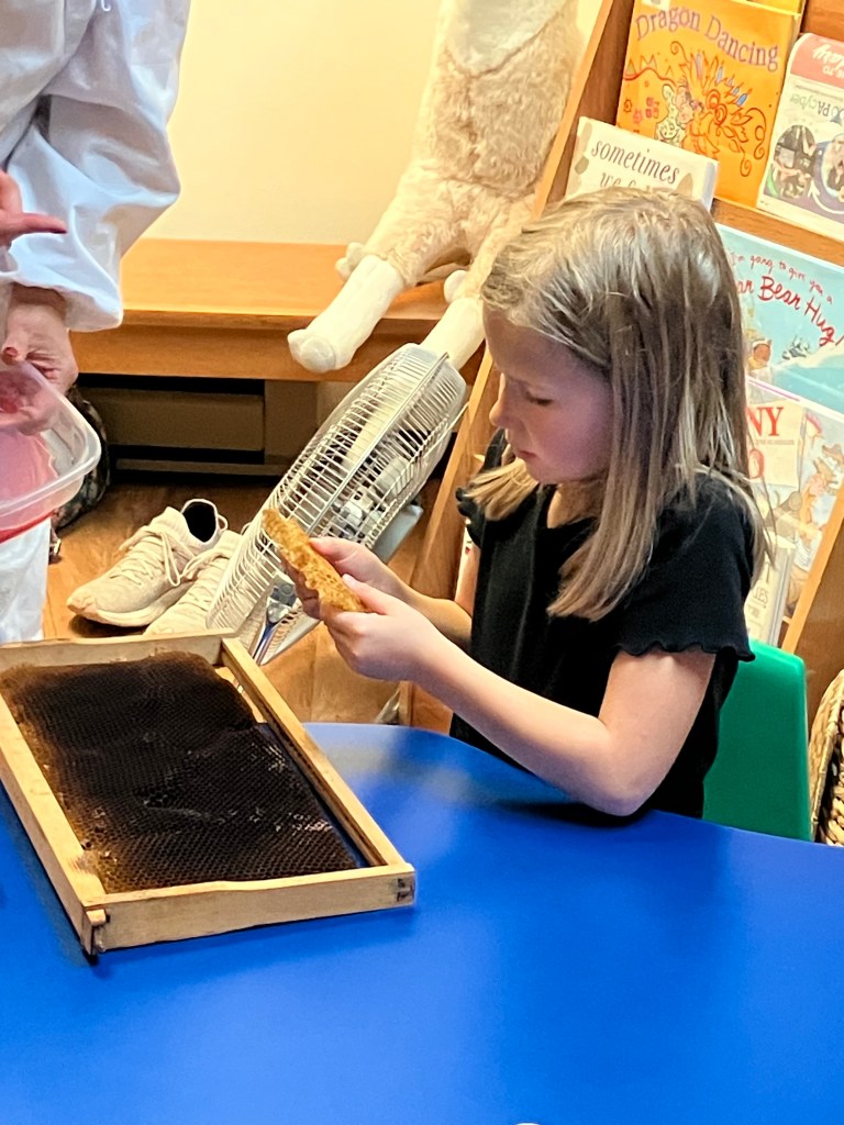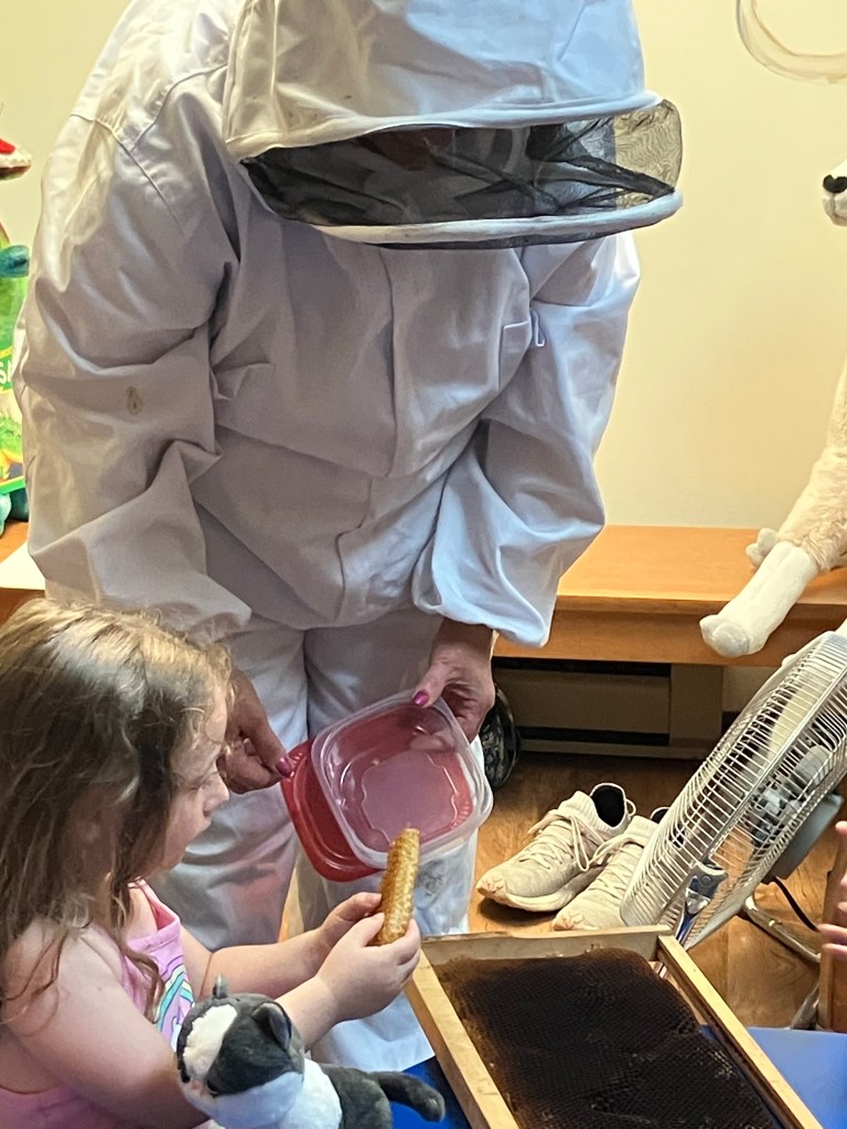 They enjoyed honey snacks and even got to take home a jar of local honey donated by Micheal Kranek.