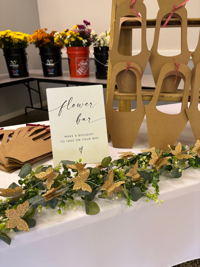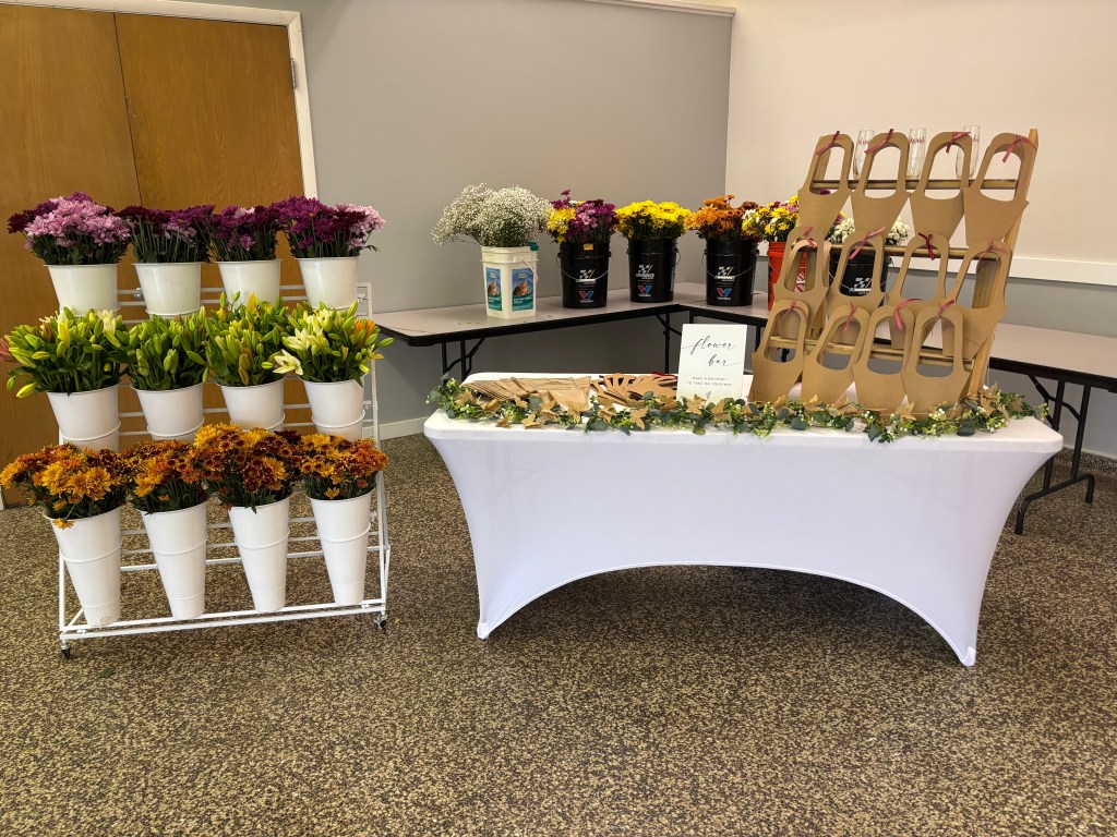 Attendees enjoyed a delightful appetizer and wine social, which fostered conversation and connection among guests. The event also included a flower bar, allowing participants to create beautiful floral arrangements, and a delicious lunch that was served to all guests.