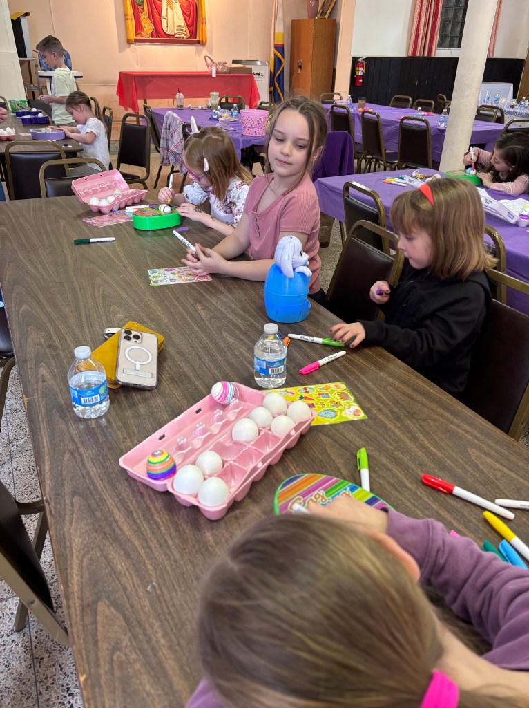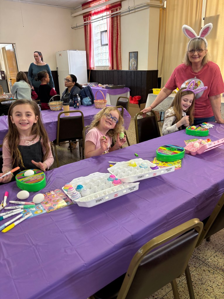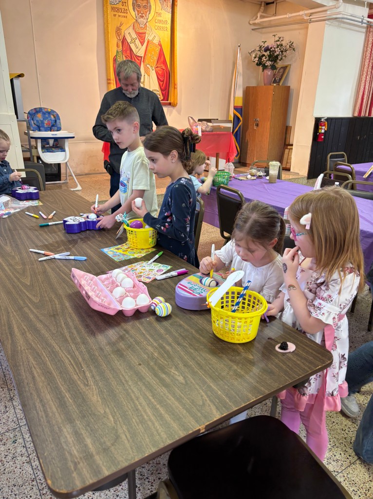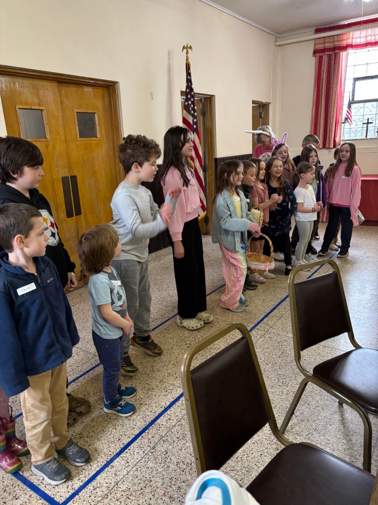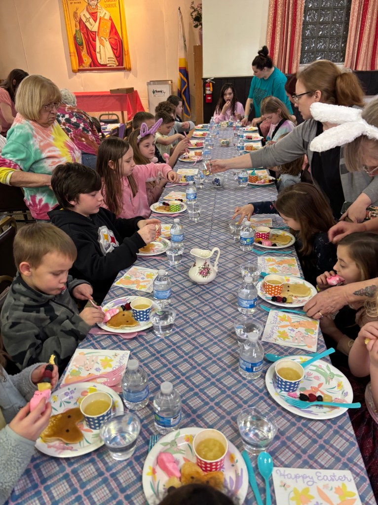It was a beautiful day so children were able to hunt for eggs outside St. Nick’s church.